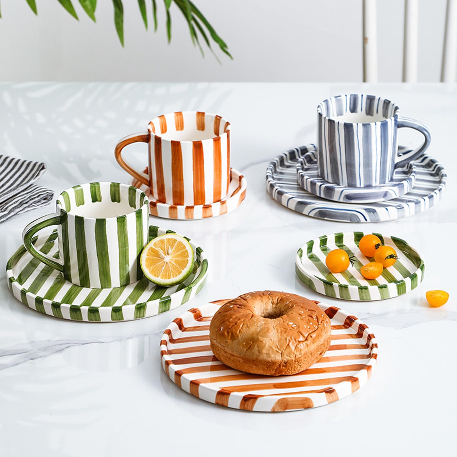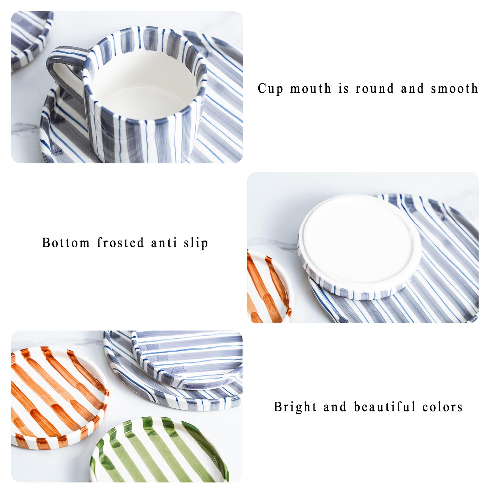8 Oz Ceramic Coffee Mug Espresso Cups with Saucer Mug And Saucer Set Cup And Saucer Coffee Cups with Saucers Coffee Cups And Saucers,Black